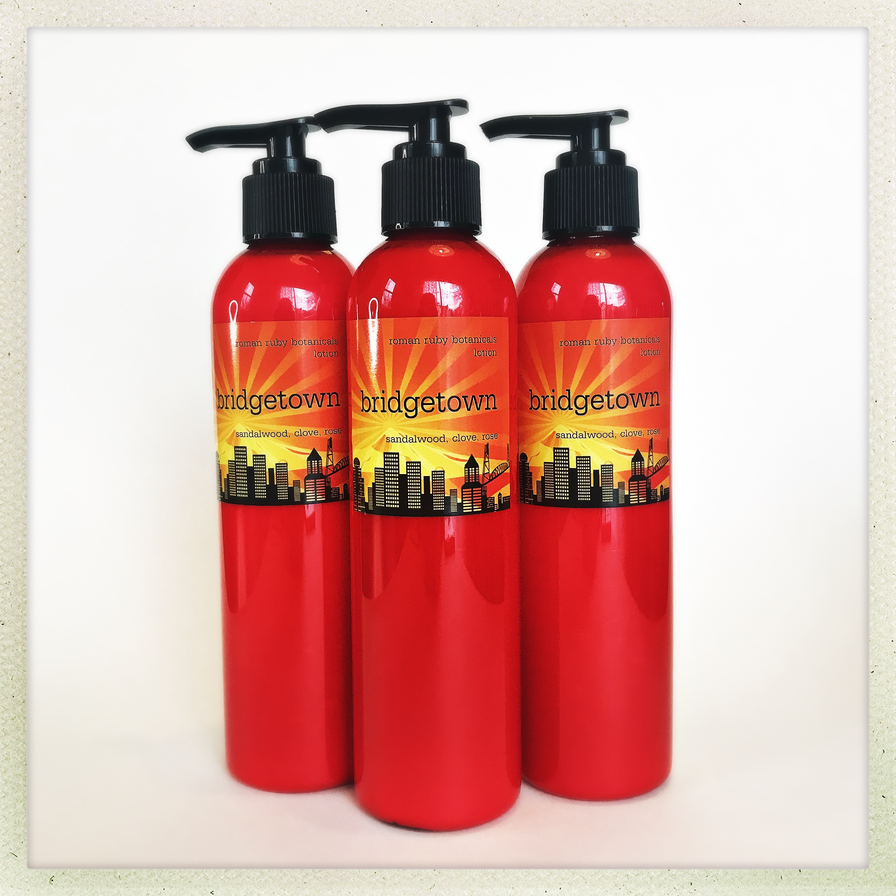 This 8oz Bridgetown lotion is scented with sandalwood, clove, and Victorian rose.
