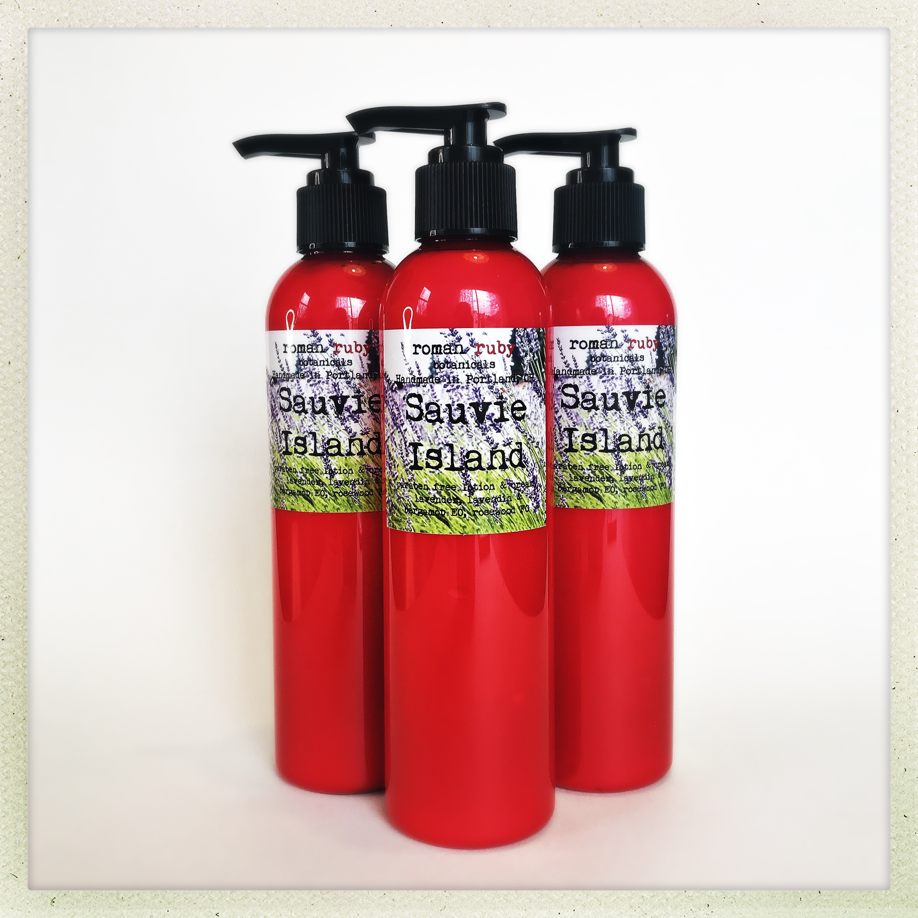 This lotion and cream blend is scented with 100% pure lavender, lavandin, bergamot and orange oils with a touch of rosewood oil.