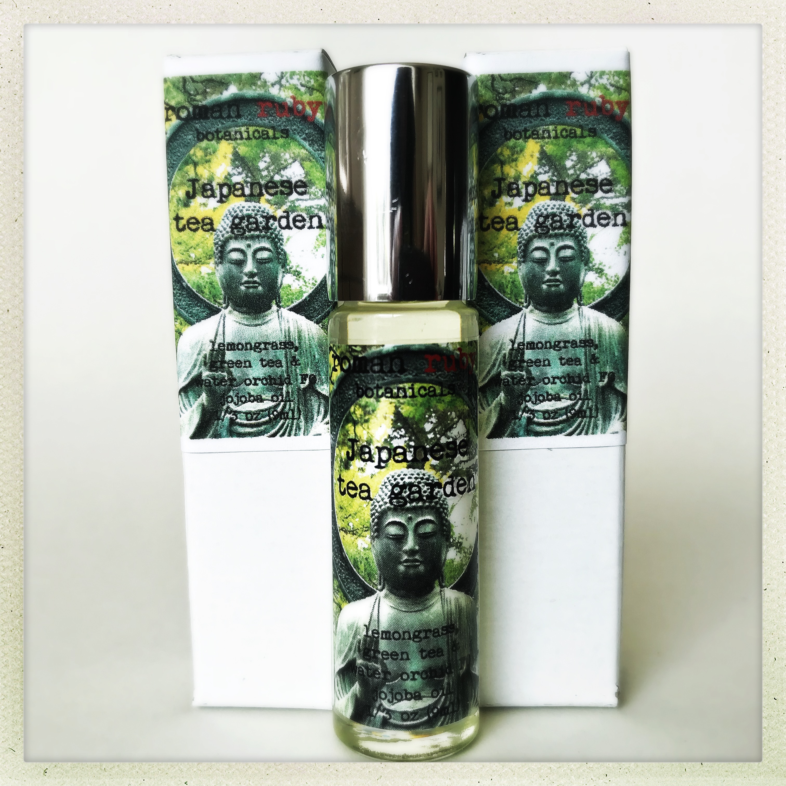 Japanese Tea Garden perfume oil is made with the renewing scents of lemongrass, green tea and water orchid. This rejuvenating scent leaves you feeling clean and refreshed. Its invigorating essence helps you remain in a Zen state of mind during your busy day.